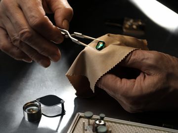 Skilled shaping, polishing, and cutting of gemstones to enhance their brilliance and fit for custom settings.